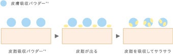 メイク崩れ防止・・・皮脂吸着パウダー*¹が日中の余分な皮脂を吸着し化粧崩れを軽減します。