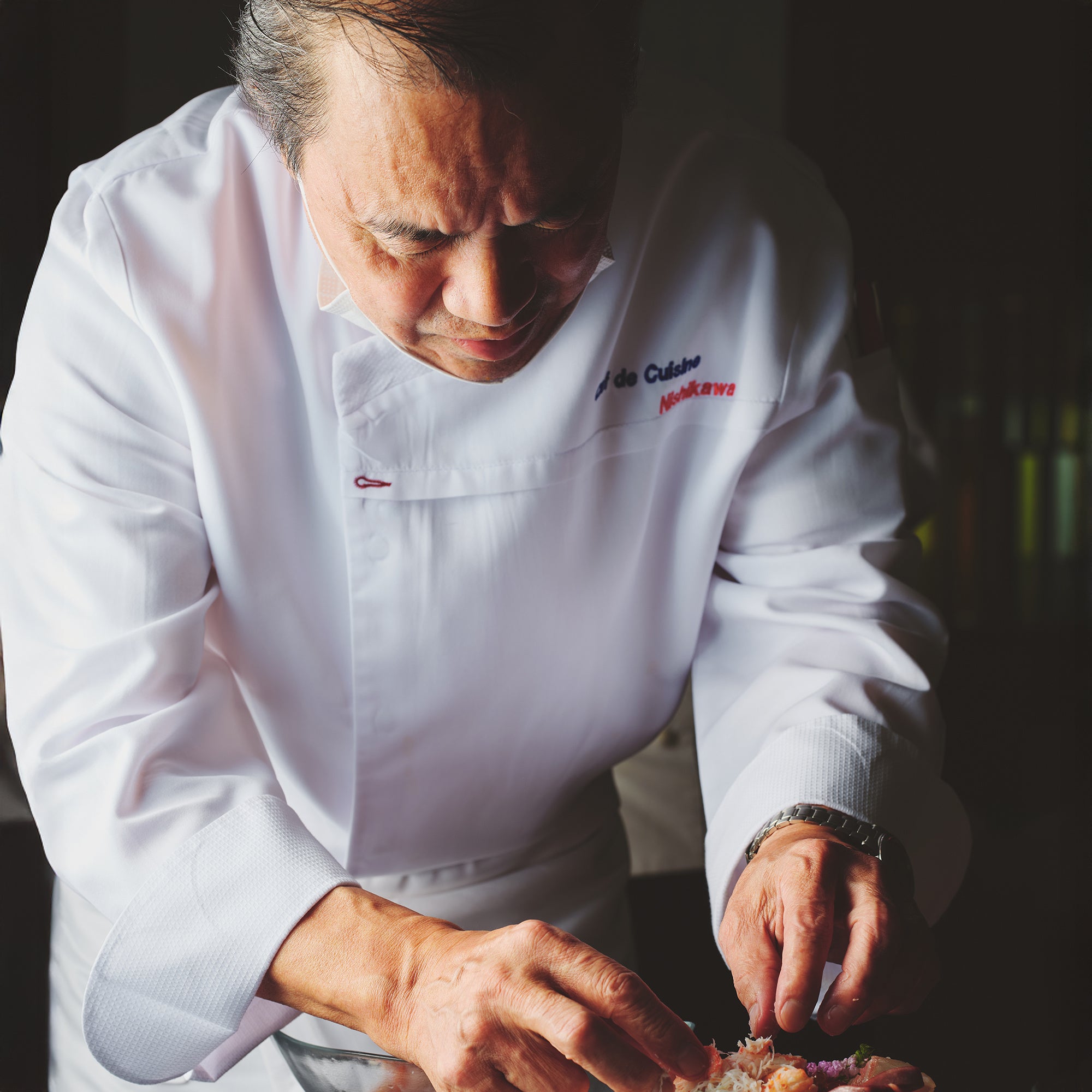 ・ホタテのブリオッシュ クルヴェットとスモークサーモン 生ハムとアボカドのタンバル キャビア添え