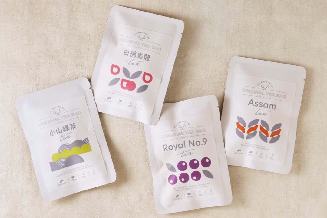 ラインナップは、人気のロイヤルNo.9、深みのあるアッサム、華やかな白桃烏龍、爽やかな小山緑茶の4種類。