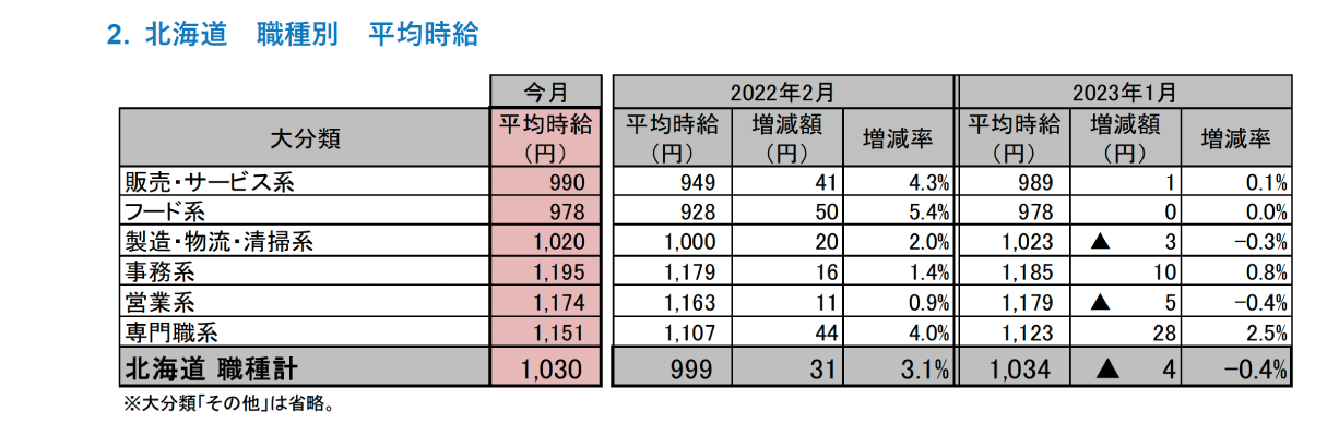 [北海道版]2023年2月度 アルバイト・パート募集時平均時給調査 北海道の2月度平均時給は前年同月より31円増加の1,030円