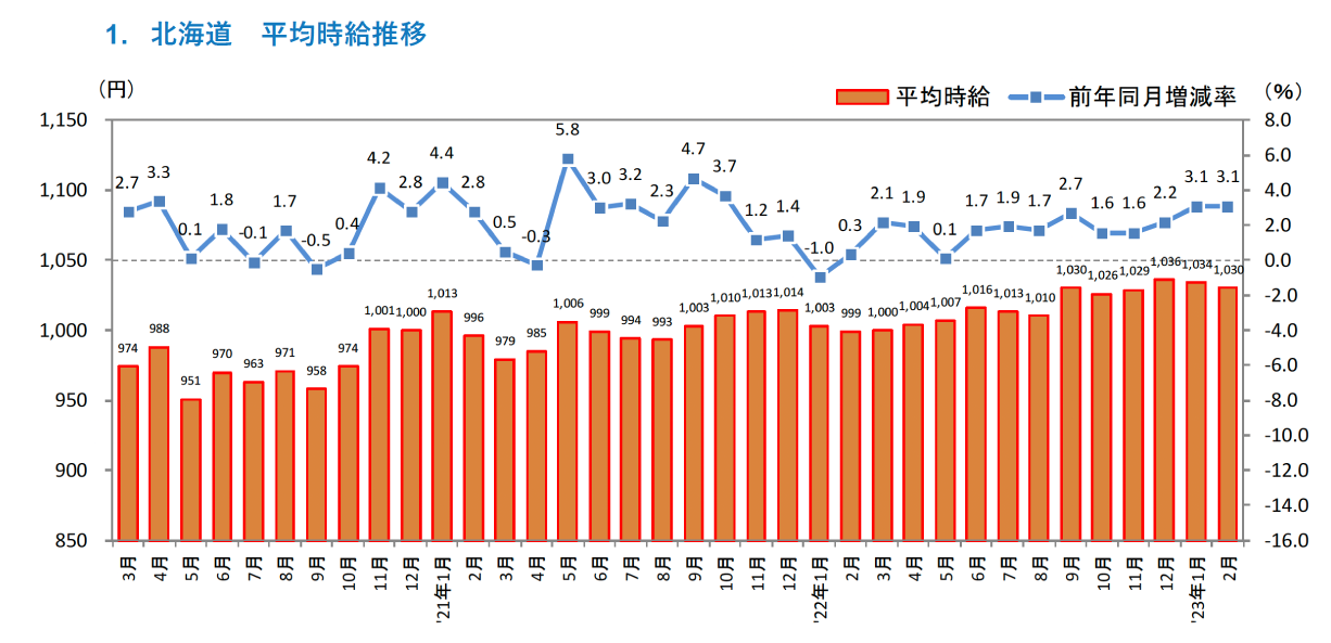 ■ 北海道の平均時給は1,030円(前年同月999円、前月1,034円)