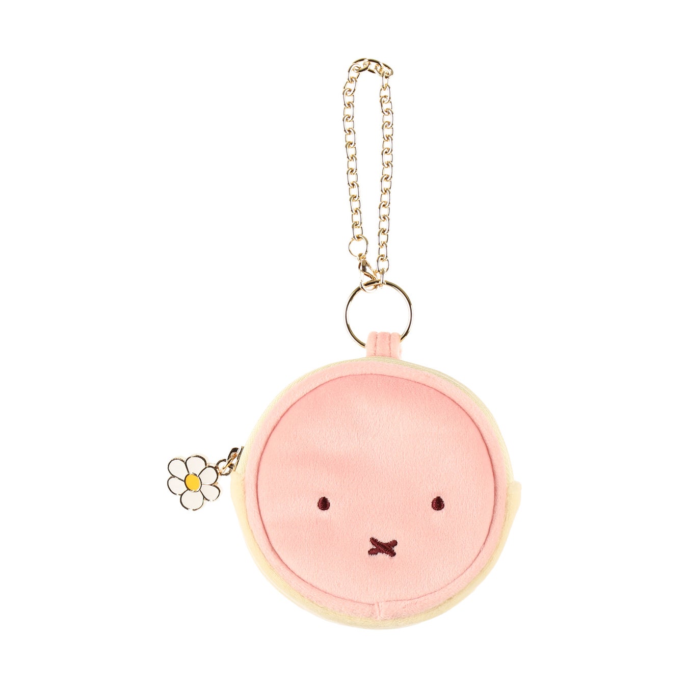 マカロンポーチは、ソフトボアの生地を使用し、ぬいぐるみチャームのようなあたたかみを感じるアイテムに仕上げました。ミッフィーマカロンに付いているお花のチョコレートをイメージしたチャームと、お手持ちのバッグやエコバッグの取っ手に付けられるようチェーンが付いた便利な仕様です。エコバッグは、なめらかな触り心地が特徴的なピーチスキンを採用し、マットで落ち着いた光沢感とシンプルなデザインが普段使いにぴったり。