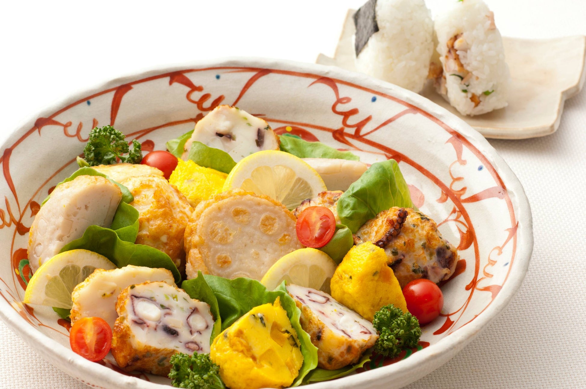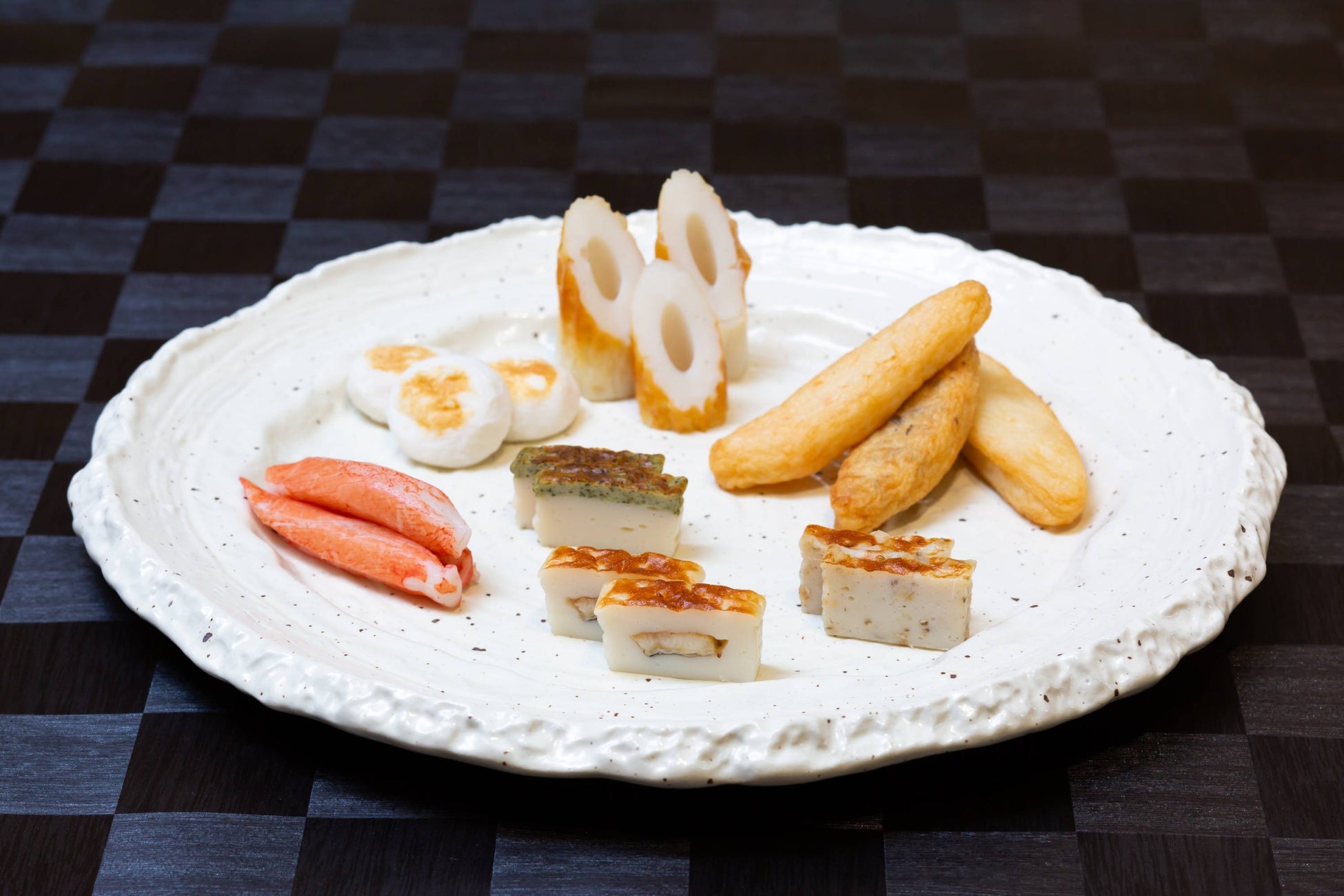 かまぼこは、魚を美味しく食べるための手段として日本で生まれた伝統製品のひとつです。その起源をたどっていくと、西暦 200 年頃、神戸の生田の社で、すりつぶした魚肉を鉾の先に塗り付けて焼いたものを食べたのが、かまぼこの始まりという伝説があります。
