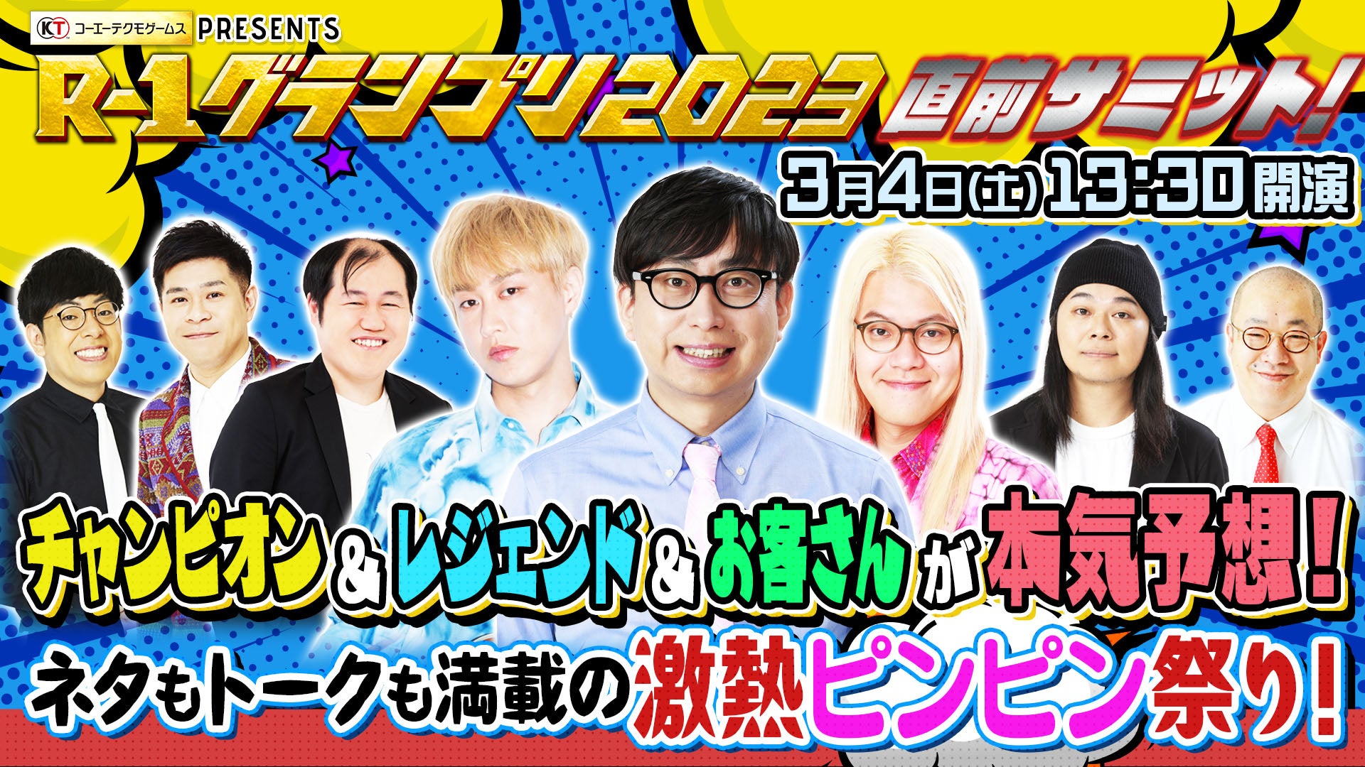 「R-1グランプリ2023直前サミット!チャンピオン&レジェンド&お客さんが本気予想!ネタもトークも満載の激熱ピンピン祭り!」では、過去のR-1チャンピオンと、芸歴10年以上で大会を卒業した“R-1ぐらんぷりクラシック”メンバーが、今大会をどう見るのか決勝戦の展望を大胆予想します。