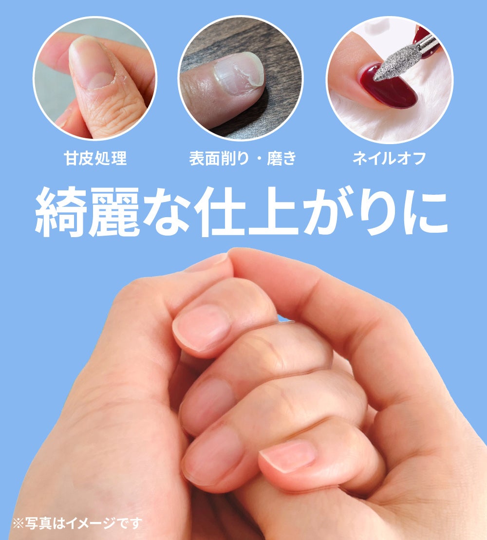 爪のケアからサンディング、ジェルネイルの除去まで、あらゆる作業をこの一つで行うことができます。