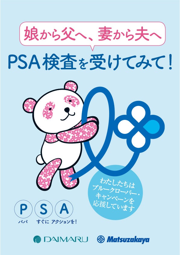前立腺がんは50歳以上の中高年に多くみられる男性特有のがんであり、検診による早期発見と適切治療が何よりも大切です。当社では、前立腺がん検診の大切さをお伝えするために、「ブルークローバーキャンペーン」を開催し、前立腺がん検診(PSA検査)の受診を啓発運動を通じて推進いたします。