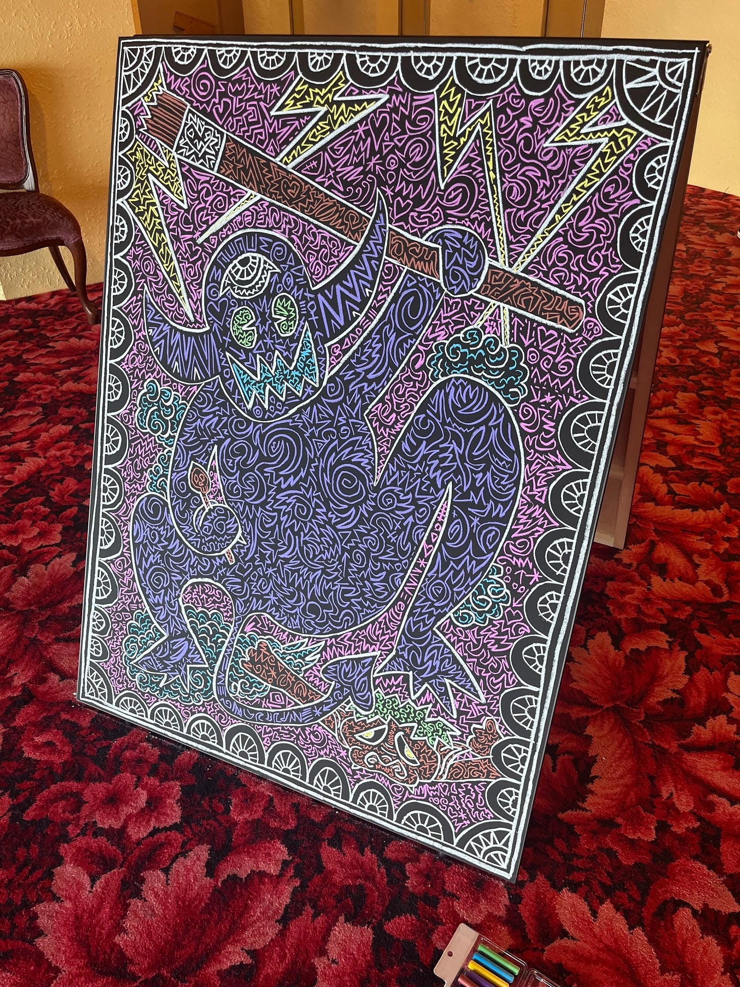 2020年、第47回日本近代美術協力展入選、2021年、第71回モダンアート展入選。かまぼこ板にイラストを描くかまぼこ板アートやステッカー、キャンバス作品、黒板作品、企業やアーティストのロゴやグッズデザインなども制作している。2022年、作家としての処女作「こんなにバイトして芸人つづけなあかんか」(新潮社)を上梓した。
