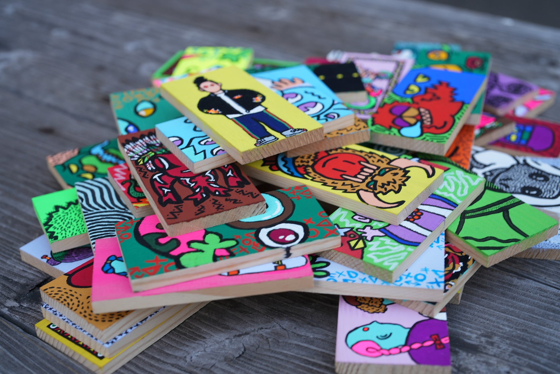 エッセイ、チョークアート、ストリートアートで話題沸騰中!! ピストジャムが初の個展「極彩奇天烈板絵図」を開催 300枚のかまぼこ板がギャラリーの壁を埋め尽くす!