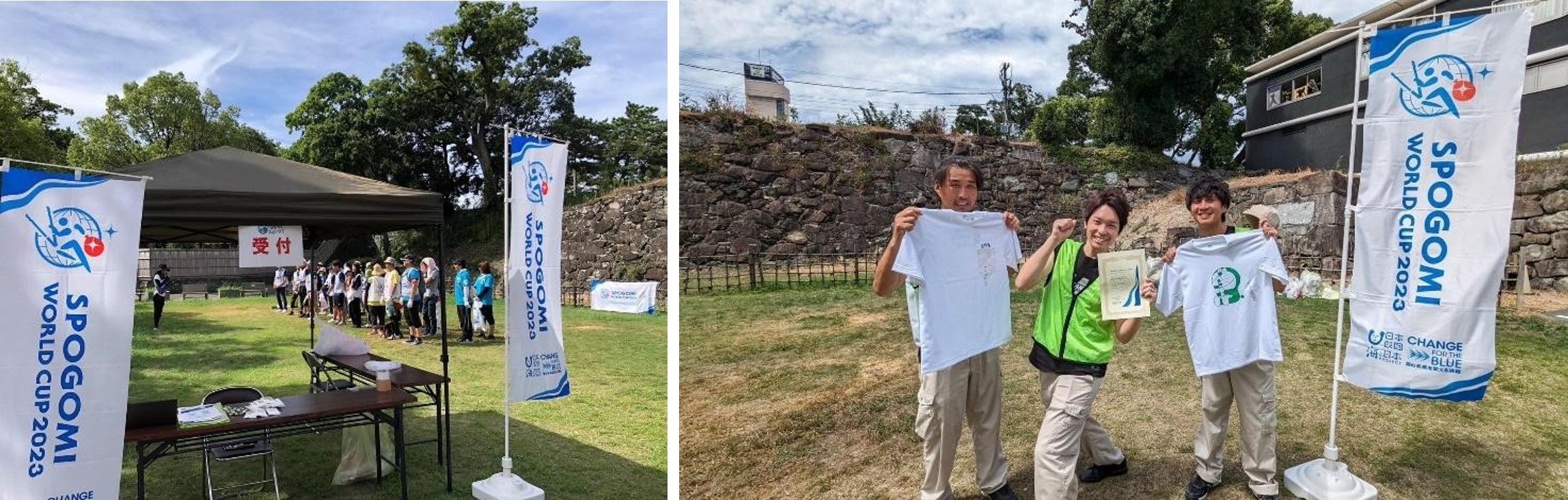 参加を楽しみにしていた高校生バスケ部に所属の5チームがコロナ感染で直前の出場辞退となることもありましたが、全13チームで開催した和歌山 STAGE。和歌山市自治振興課の協力の下、県内から企業、団体、家族、友人などでチームを結成し、幅広い年代の方が出場しました。会場はアクセスと景観の素晴らしい和歌山城公園内のわかやま歴史館南側広場。朝から気温がぐんぐん上がる中、受付時間よりずいぶん前に集まる参加者たち。皆さんの意欲の高さを感じました。開会式でのルール説明を真剣に聞き、続く作戦タイムでは白熱した話し合いが行われていました。優勝したのは同じ職場で働くの男性3人組の「お・も・て・な・しBusters」。ごみ総量9.86kg/1,705ポイントを獲得。重量では2位より軽かったものの、ポイントを稼ぎ見事優勝。ここがスポGOMIの面白さでもあります。2023年10月に東京で行われる予定のスポGOMI ワールドカップ 2023 日本 STAGEでも好成績が期待されます。