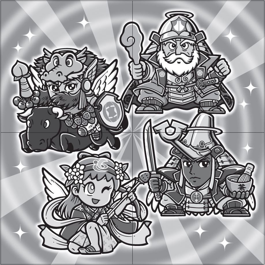 (3)スタンプ台紙に各市町のスタンプ4つ( 2市2町分)を集めると、シール配布場所で「2市2町限定イラストのビックリマンキャラクターシール」が4種類の中から1枚もらえます。