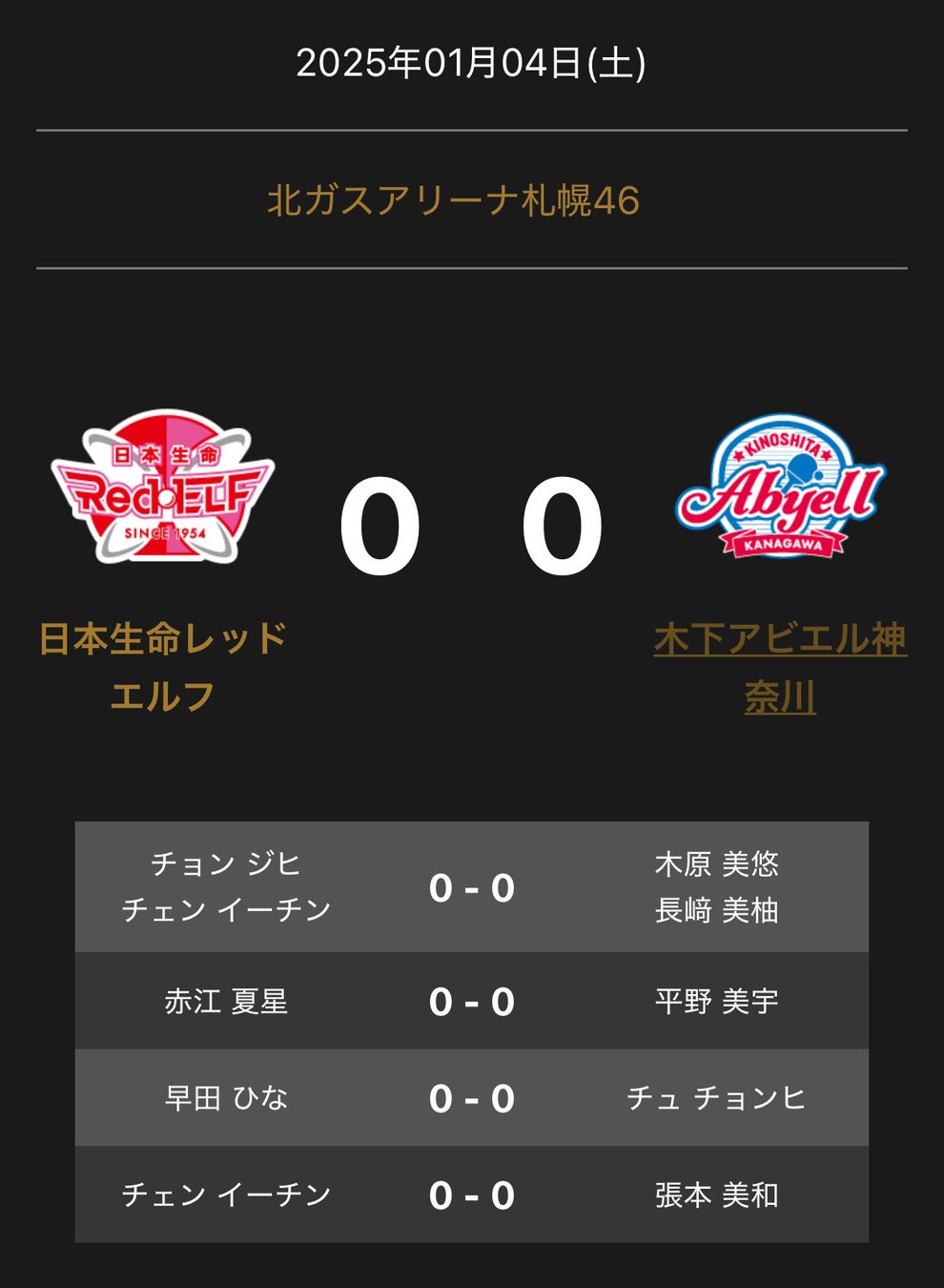 ノジマTリーグ 2024-2025シーズン 公式戦 1月4日開催 日本生命レッドエルフ vs 木下アビエル神奈川 対戦オーダー発表