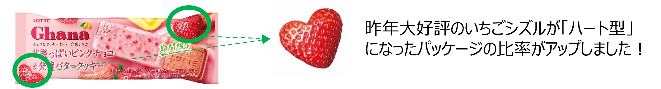 昨年大好評のいちごシズルが「ハート型」になったパッケージの比率がアップしました!