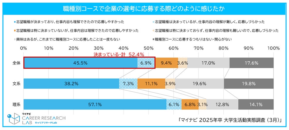 約5割の学生が「志望職種が決まっている」と回答。職種別コースに「ミスマッチ解消」「今後のプランが立てやすい」など安心の声