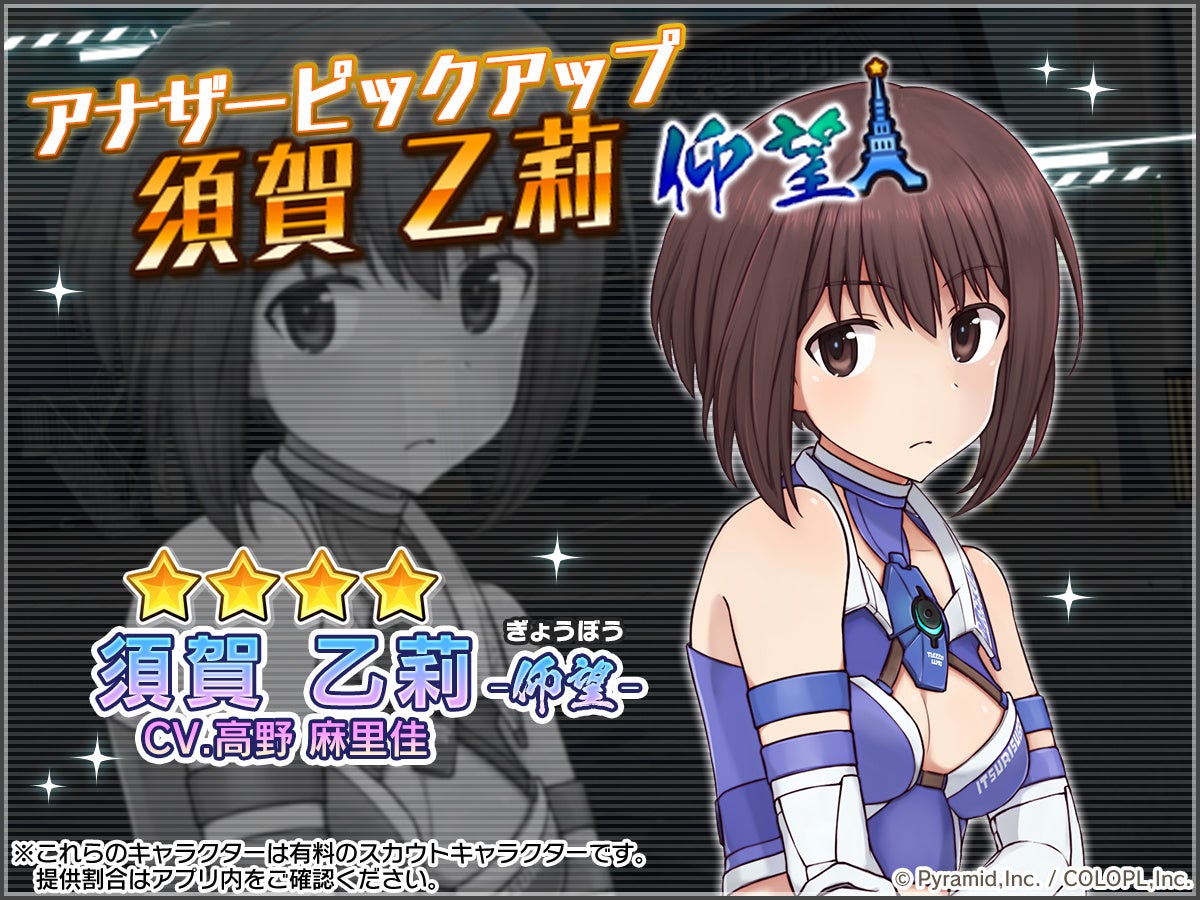 新ステラーキャラクターの登場にあわせて、乙莉が登場する復刻イベント「AEGiS P-1GP ホクホク伝説」や、アナザーキャラクター「須賀 乙莉【仰望】」の復刻スカウトも開催中です。