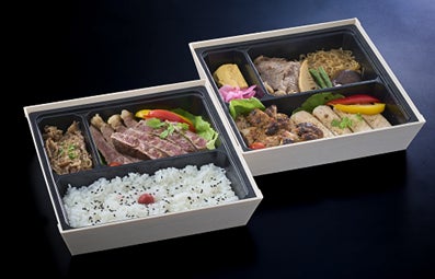 壱の重:国産黒毛和牛シャトーブリアン(100g)、国産黒毛和牛サーロインステーキ(100g)、国産牛しぐれ煮弐の重:国産黒毛和牛すき焼き(60g)、東京X豚ローストポーク(100g)、岩手県産いわい鶏 ももチキンステーキ(150g)