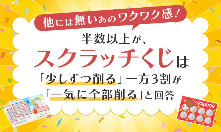 【他には無いあのワクワク感!】半数以上が、スクラッチくじは「少しずつ削る」一方3割が「一気に全部削る」と回答