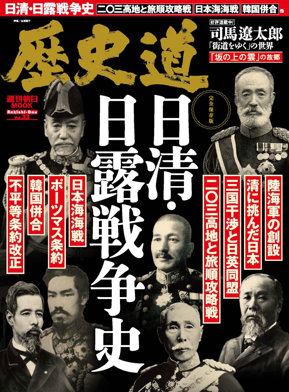 2024年5月7日(火)に、「歴史道 Vol.33」(週刊朝日MOOK)が発売となります。今回の特集「日清・日露戦争史」では、明治時代の日本が直面した二大戦争をクローズアップ。富国強兵と陸海軍の創設、日清両国が戦った理由、日清戦争の全軌跡、三国干渉、二〇三高地の戦いから日本海海戦まで日露戦争のすべて等々、わかりやすく解説しています。「司馬遼太郎 街道をゆくの世界」も好評連載中。