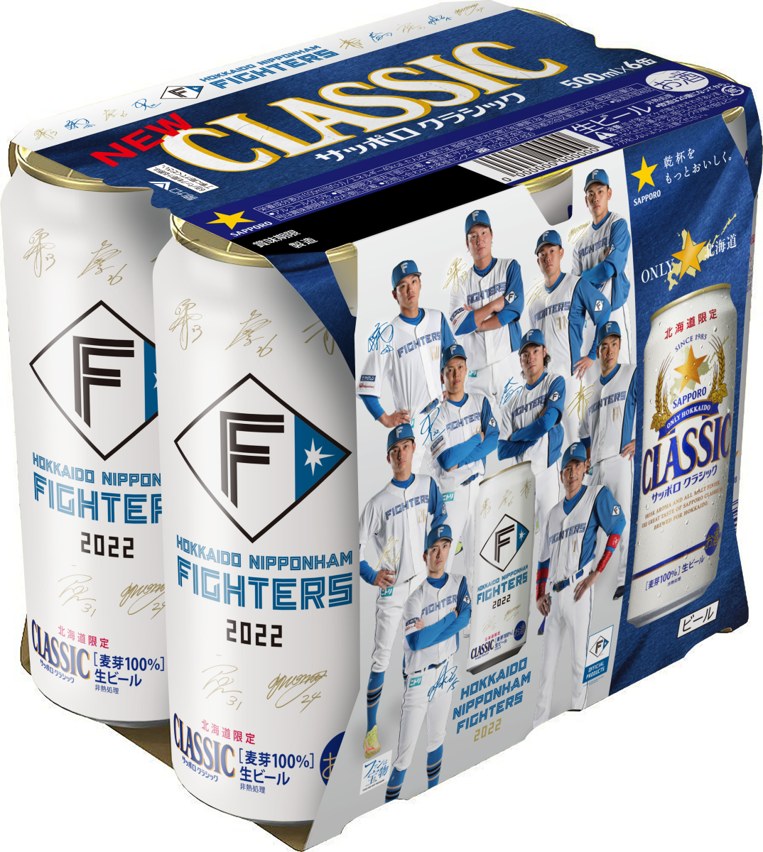 本商品は、北海道民に愛され、本年1月製造分より7年ぶりにリニューアルした「サッポロ クラシック」と、北海道に本拠地を置く「北海道日本ハムファイターズ」のコラボレーション商品です。