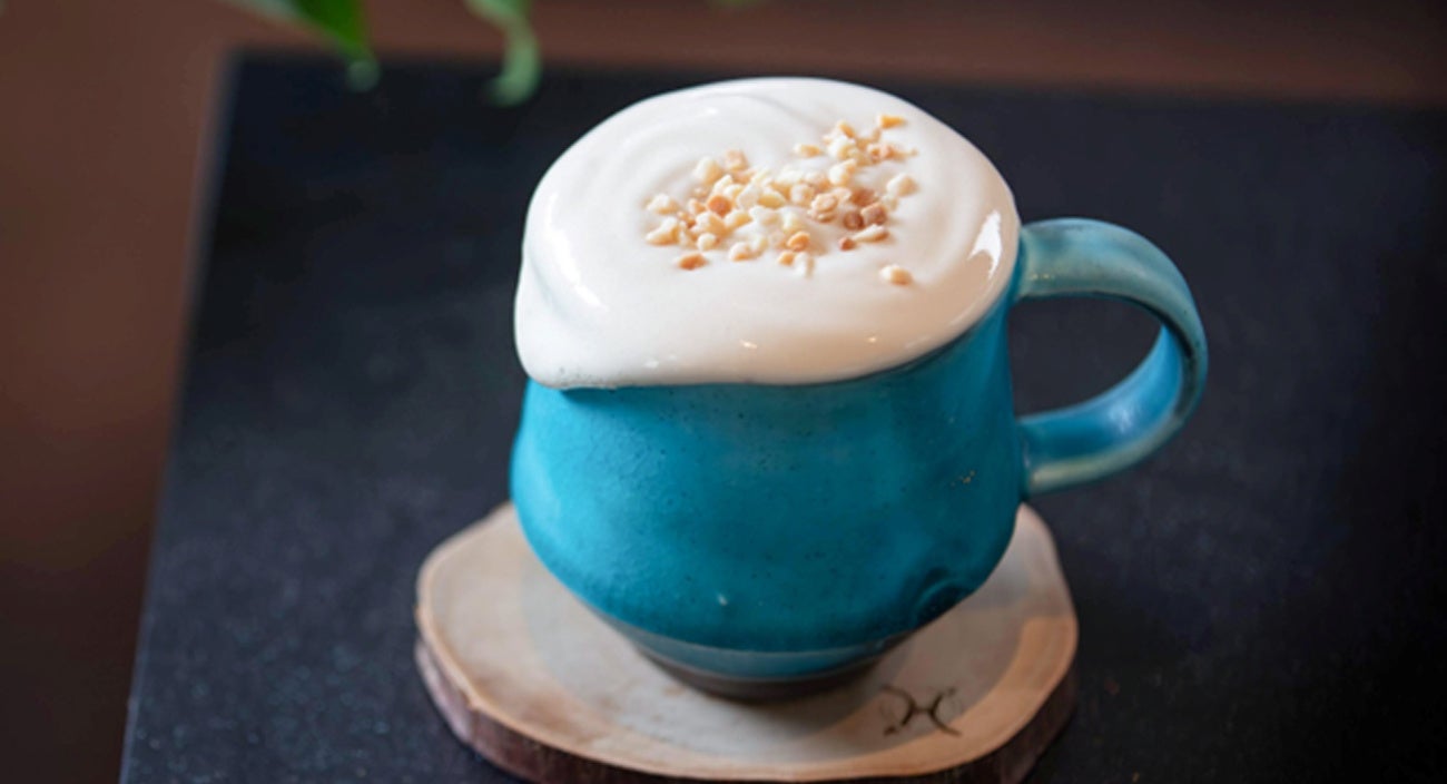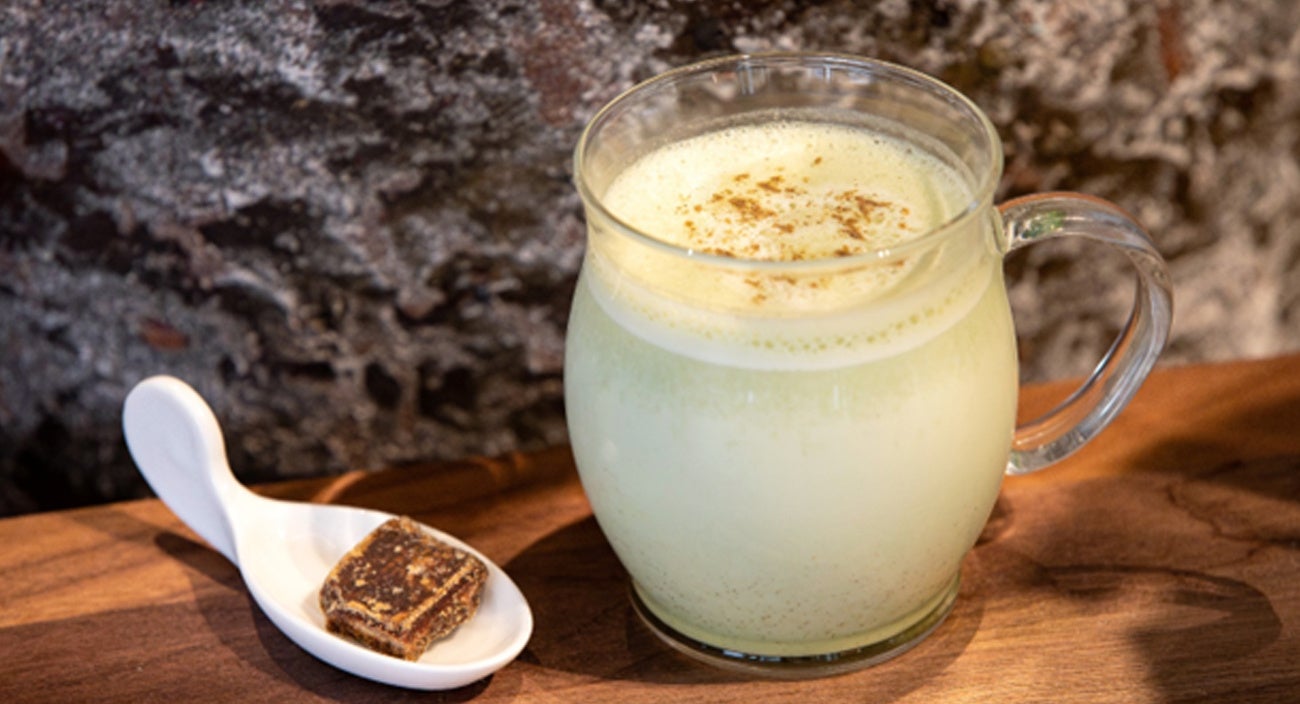 とろりとした「じーまーみ豆腐」と豆乳が出会い、濃厚でヘルシーなソイラテが誕生しました。甘じょっぱいムースとピーナッツの香ばしさが広がり、黒糖と生姜の温かさが旅の疲れを優しく癒やします。