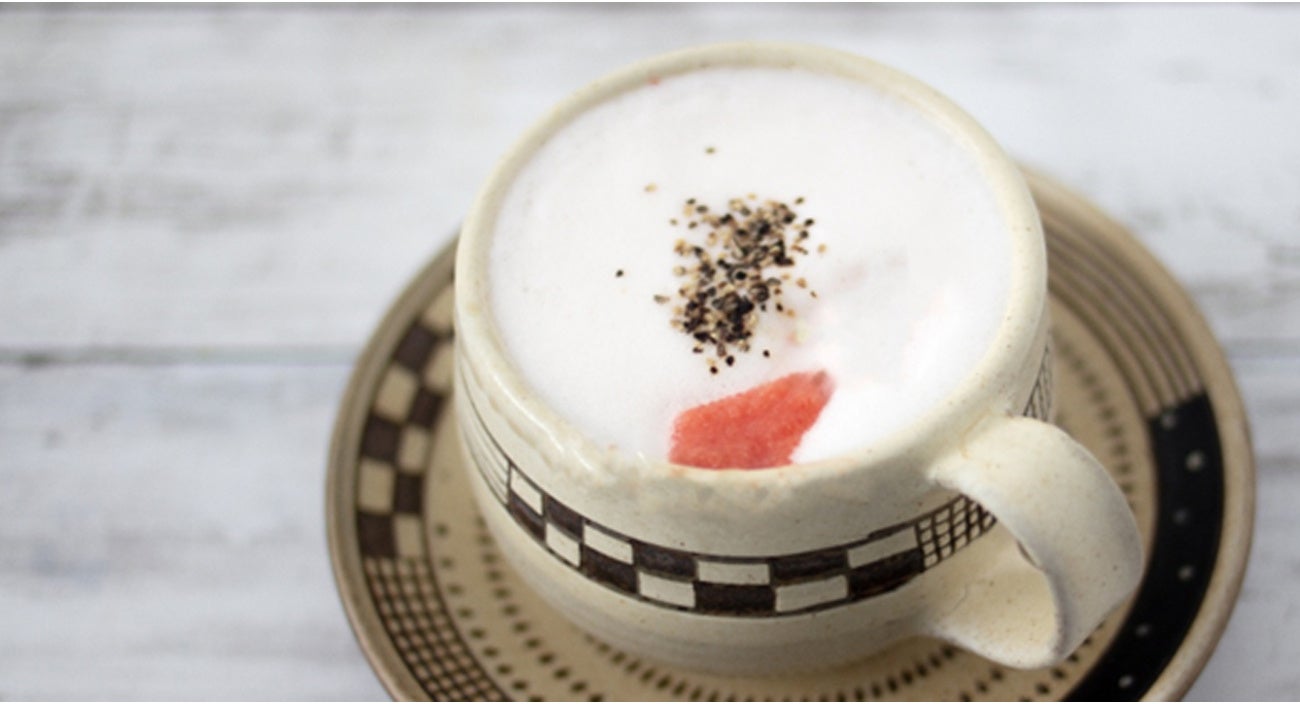 「飲む明太子」という新体験。博多のソウルフード・明太子の豊かな旨みと粒感を、白みそとバターのまろやかなベールで包み込みました。 濃厚でクリーミーなラテは、まさに"飲む美食"。サクサクのバゲットをディップしながら、その奥深いハーモニーを心ゆくまでご堪能ください。