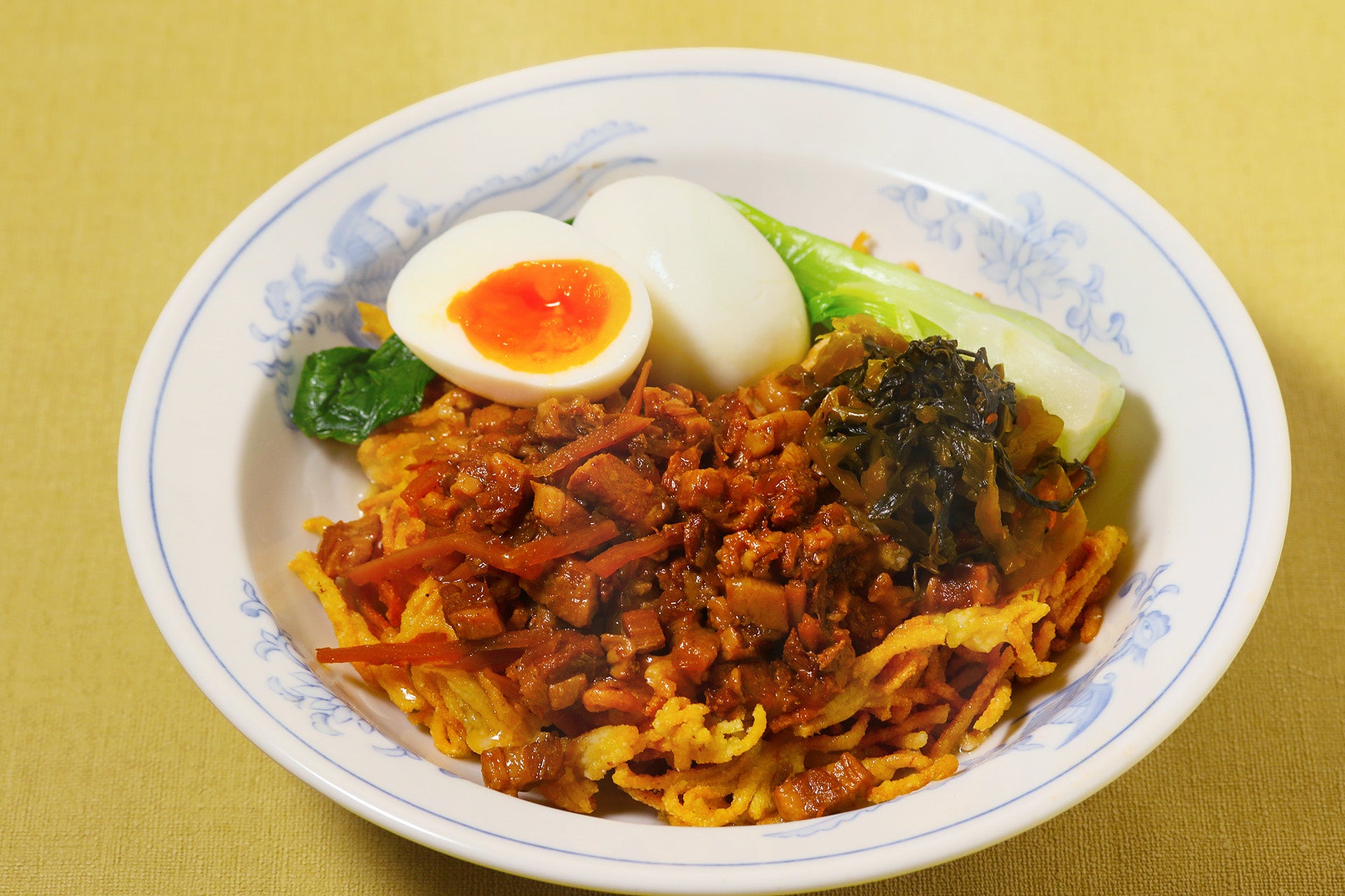 とろとろのルーロー餡が香ばしい焼きそばにたっぷりかかった一皿。