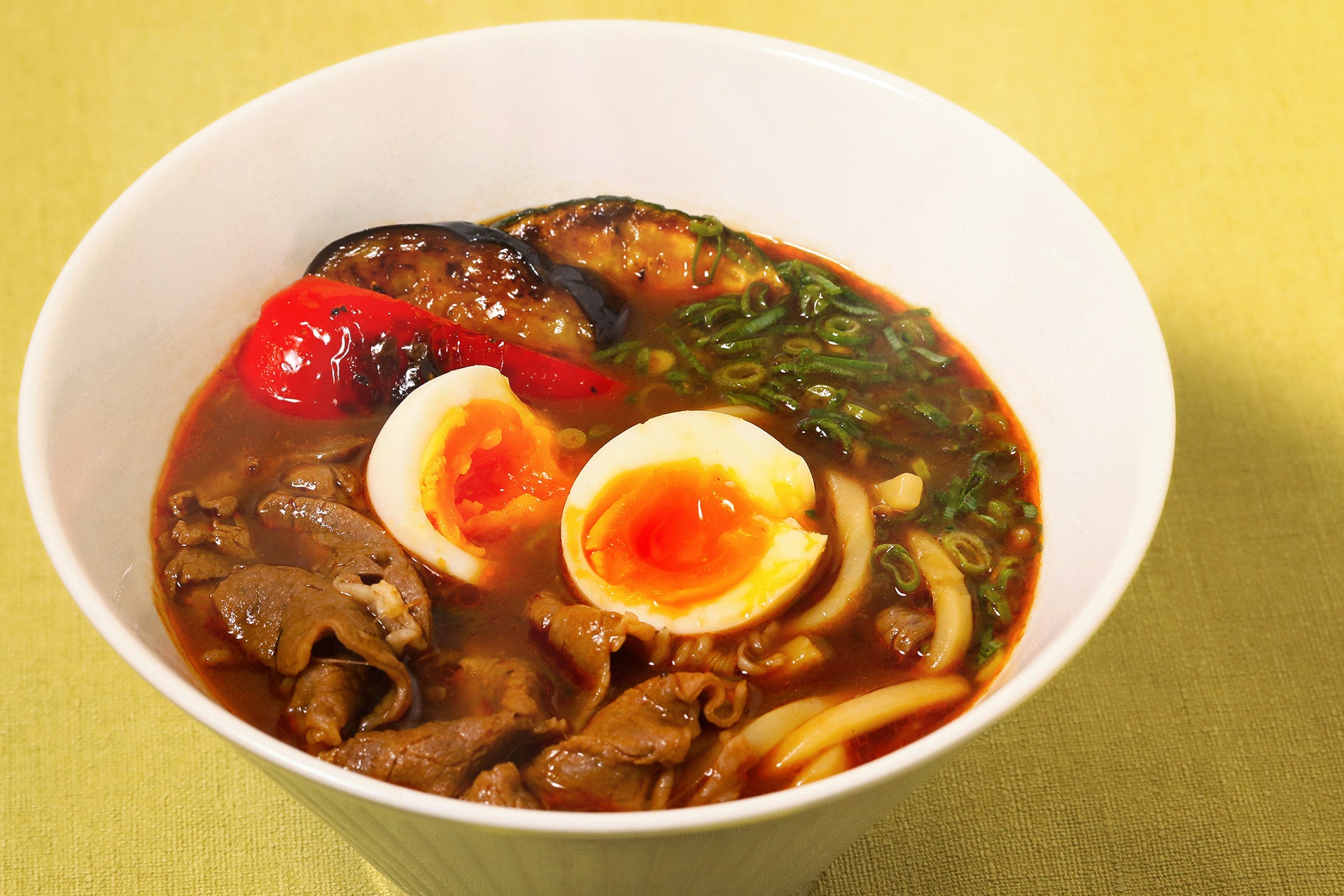 濃厚ビーフシチューが染み込んだうどんは洋食と和食の贅沢コラボ。
