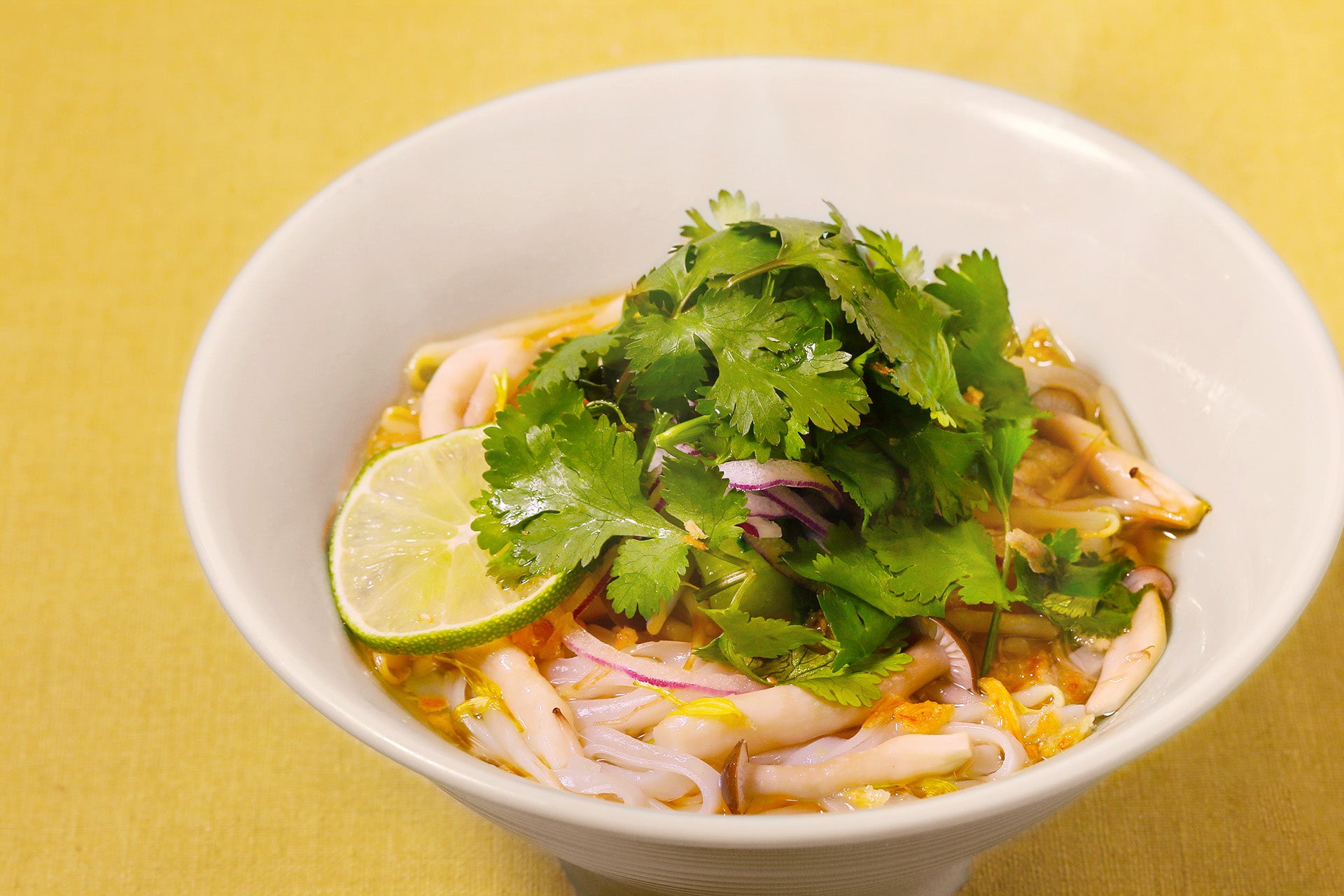 香り豊かなパクチーをドサッと盛り付けた爽やかな米粉麺の一皿。