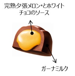 夕張メロン(*)のみずみずしい果実感とガーナミルクの濃厚な味わいが広がる、上質なひと粒ショコラ。