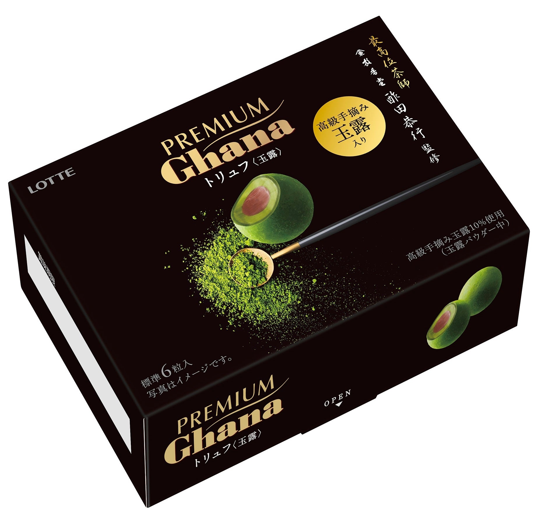 「プレミアムガーナ 最高位茶師監修トリュフ<玉露>」「プレミアムガーナ トワイニング監修生チョコレート<アール グレイ>」「プレミアムガーナ フルーツショコラ<完熟夕張メロン>」