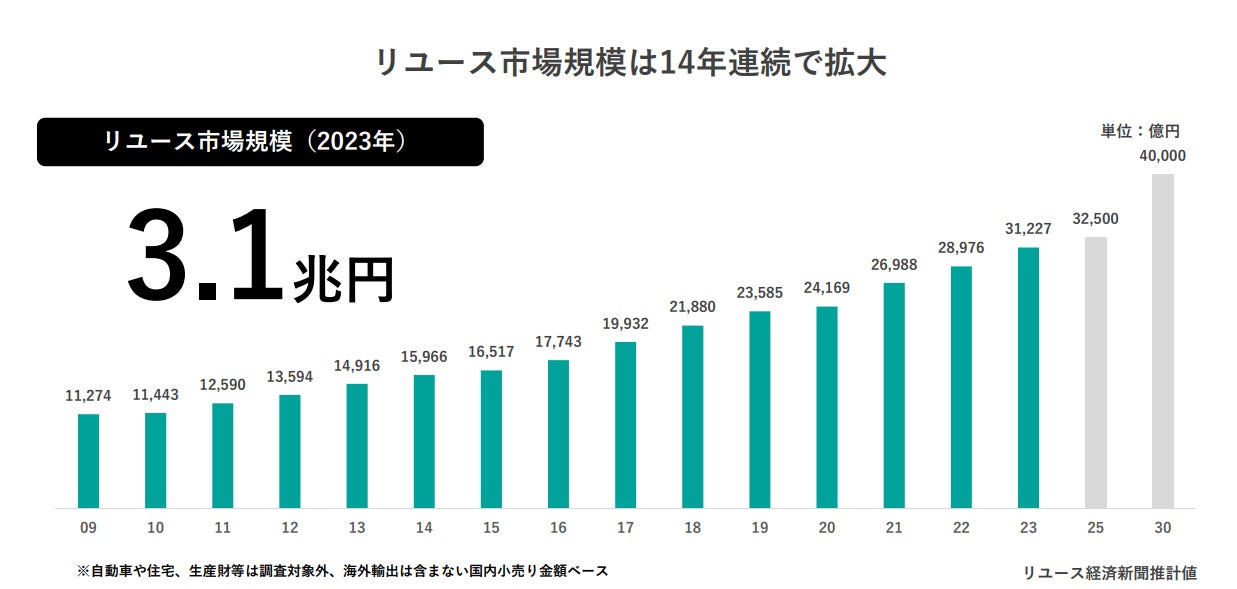 2023年の国内リユース市場規模は前年比8.2%増の3兆1,010億円に達し、今後もさらなる拡大が予測されています。