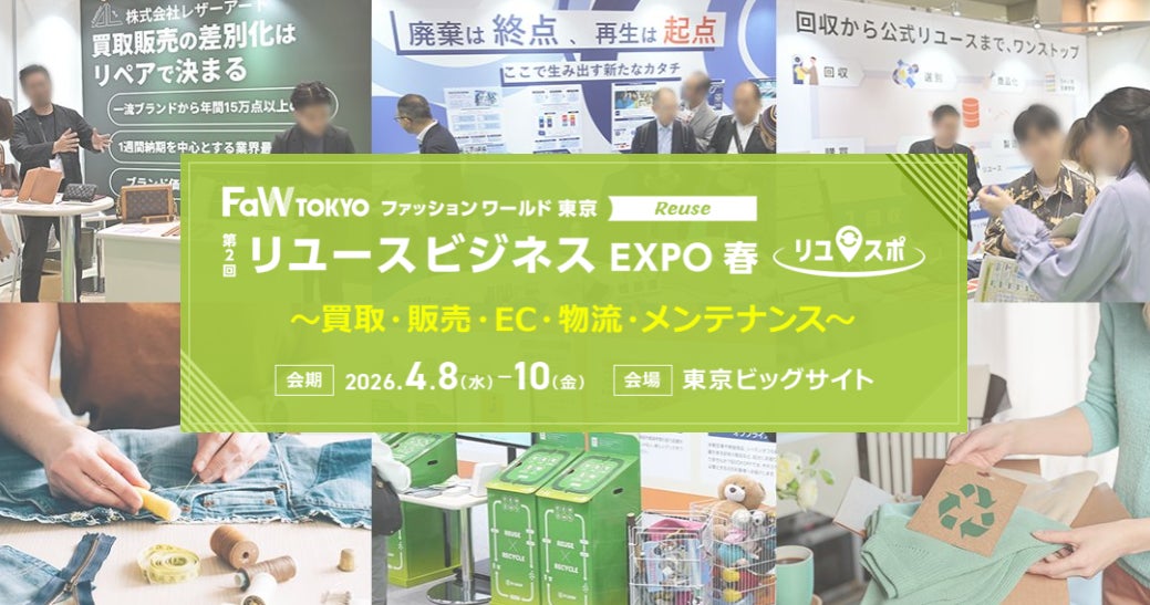 そのような中、RX Japan合同会社(本社:東京都中央区、代表執行役員社長:田中 岳志)は、最新のリユースビジネスが集結する展示会「リユースビジネスEXPO(FaW TOKYO内)」を4/8(水)~10(金) 東京ビッグサイトにて開催します。