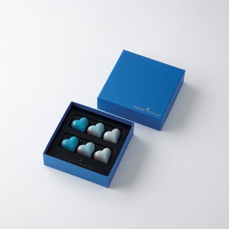 ●ブルー デ トワ 価格:3,672円(1箱、6個入)「あなたに夢中」を意味する人気の「ブルー・デトワ」。淡いブルーから食べ進めて、味わいの変化を楽しめる一箱。