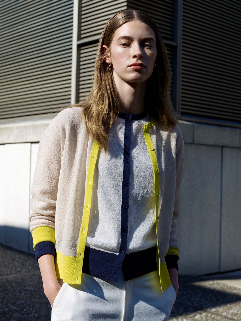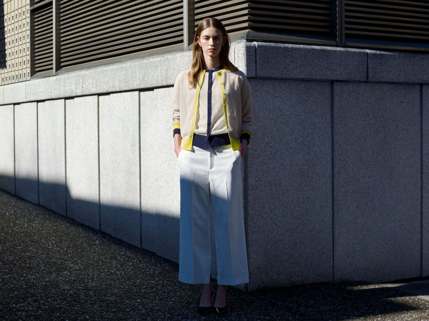 今季のコレクションでは、トピックカラーのイエローをアクセントにしたカーディガンをはじめ、ジャケットスタイルや柄物パンツなど、洗練された印象のアイテムが多数ラインアップ。