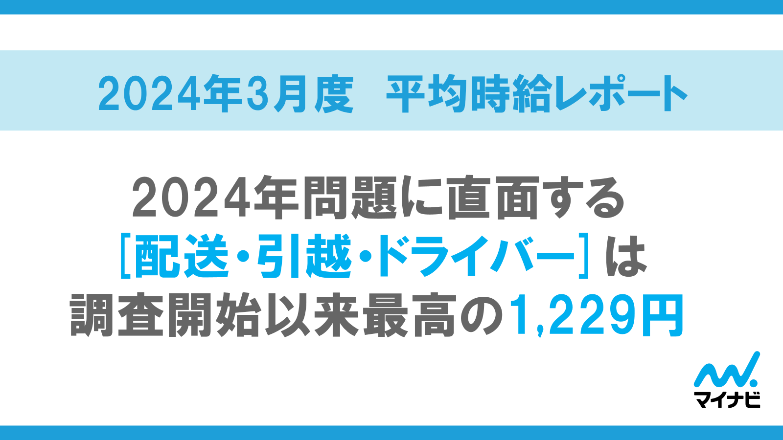 24年3月の全国平均時給は1,230円。2024年問題に直面する[配送・引越・ドライバー]は調査開始以来最高の1,229円。