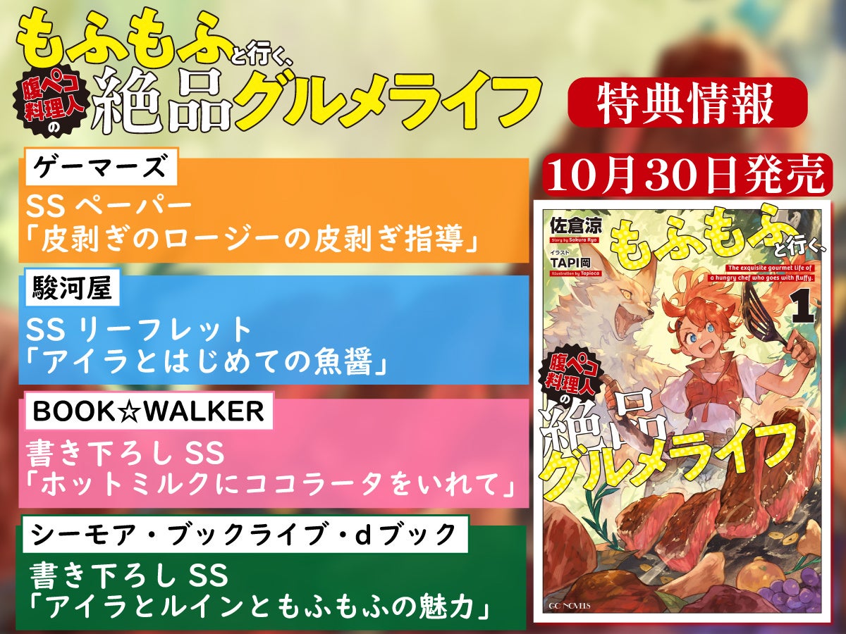 早くもコミカライズ企画進行中!『もふもふと行く、腹ペコ料理人の絶品グルメライフ 1』10月30日発売!