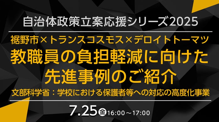 トランスコスモスは、オンラインセミナー【自治体政策立案応援シリーズ2025】教職員の負担軽減に向けた先進事例のご紹介 文部科学省:学校における保護者等への対応の高度化事業を7月25日(金)に開催します。