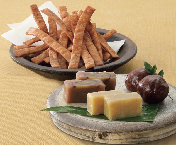 かりんとうは、かりんとう生地に栗ペーストを練りこんで甘さ控えめで止まらない美味しさに仕上げました。