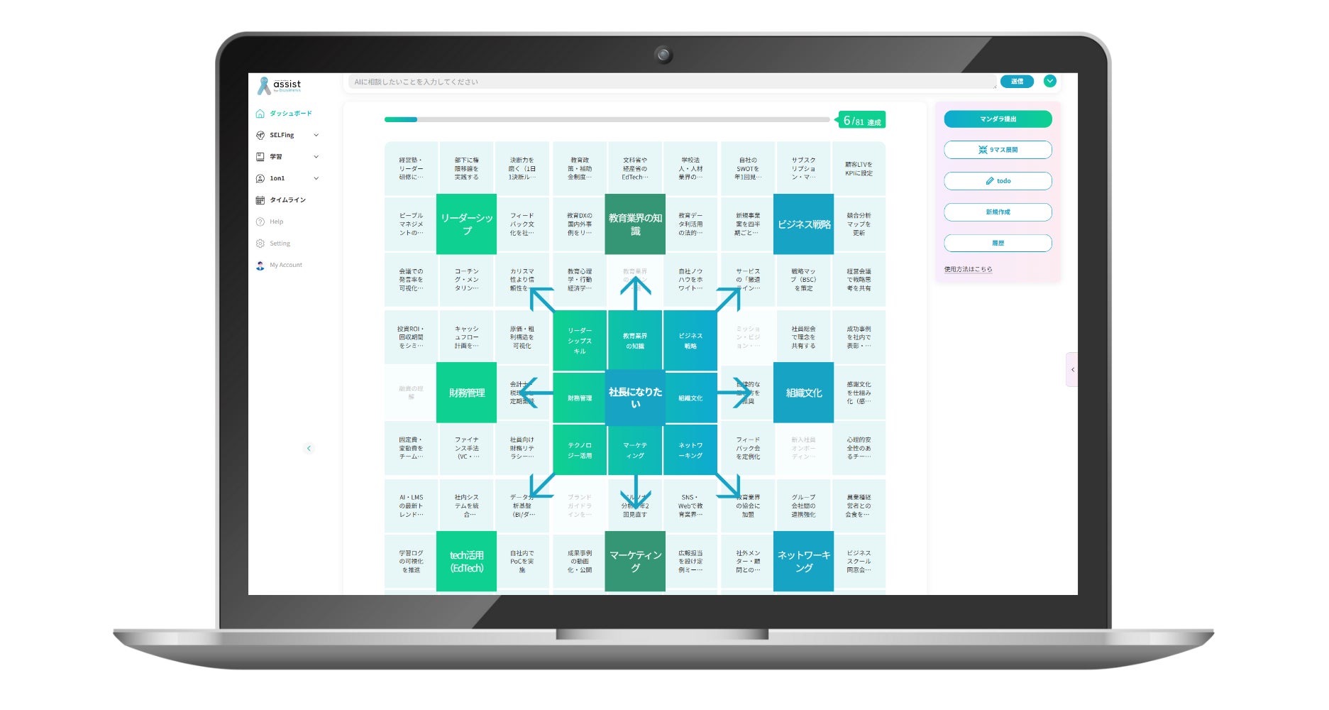 ●個人の人格や学習進捗をAIが分析し、AIマンダラチャート®とキャリア傾向を自動生成。データに基づく質の高い1on1を実現
