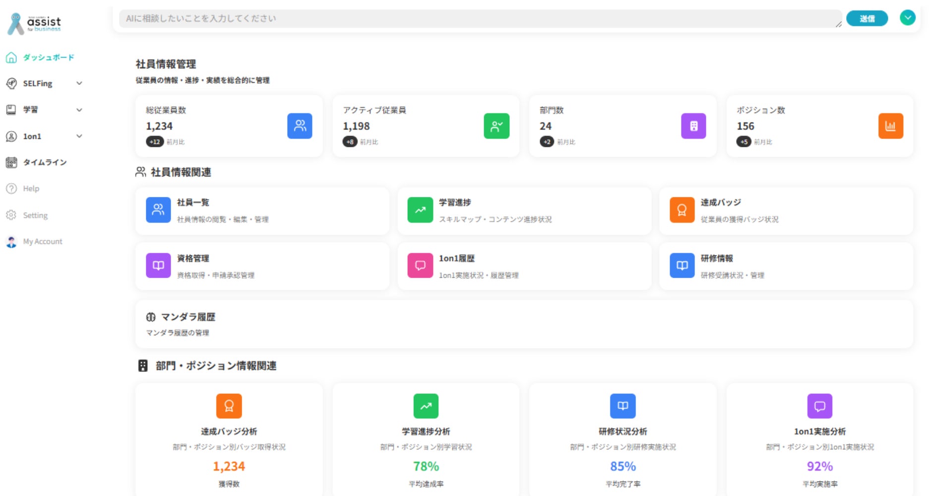 【人事研修、学習が進まない課題を解決】AIが導く自律的成長 業界初(※1)、スキル設計・学習・評価を繋ぐ「assist for business」