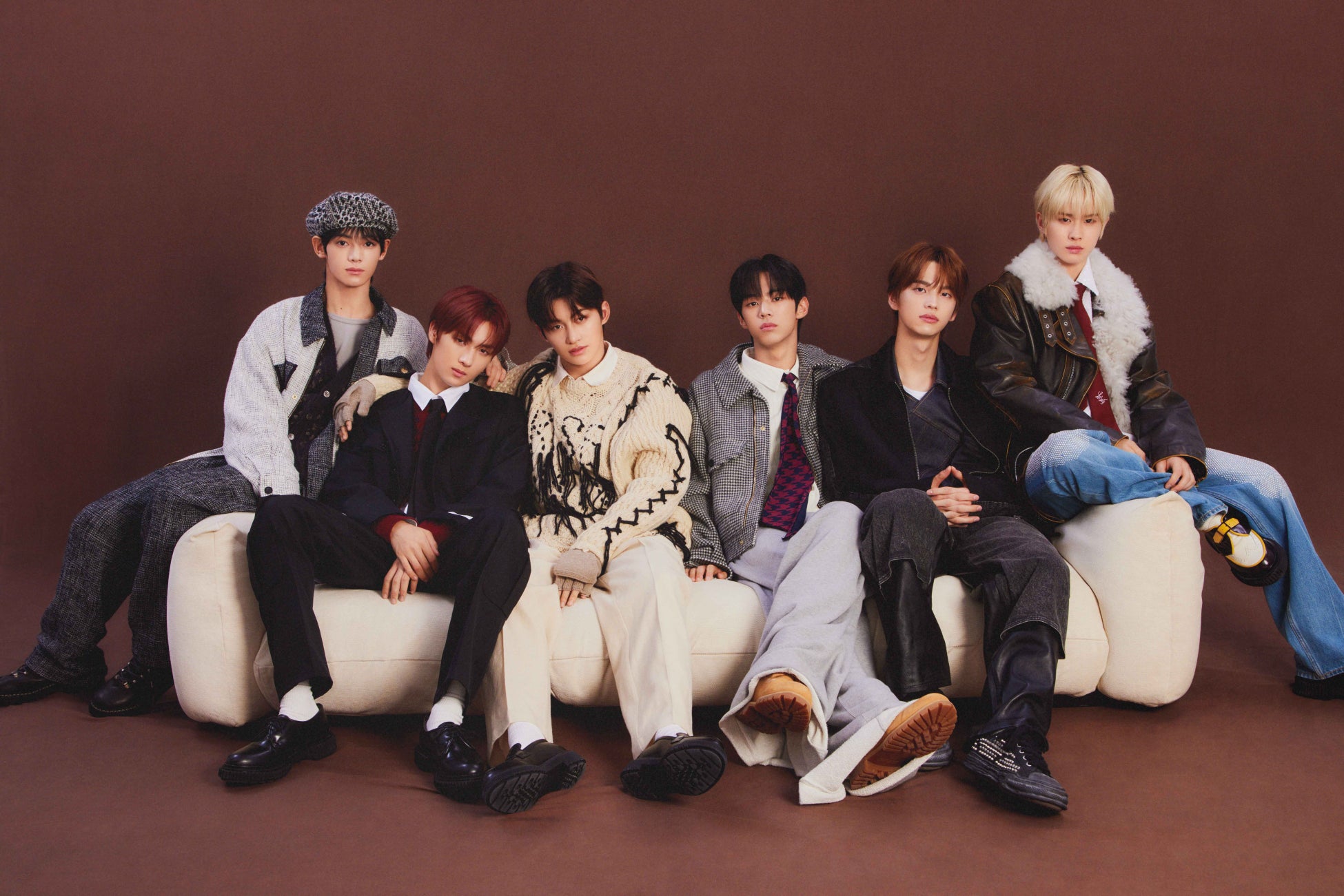 SHINYU(シンユ)、DOHOON(ドフン)、YOUNGJAE(ヨンジェ)、HANJIN(ハンジン)、JIHOON(ジフン)、KYUNGMIN(ギョンミン)の6人が、bisの世界観あふれるウィンターファッションを披露しています!個性あふれるスタイリングに喜びを感じてくれたTWSのメンバー達。