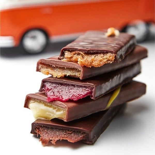 キャラメルをうすくのばし、チョコレートでコーテ ィング。