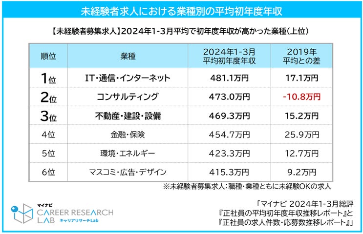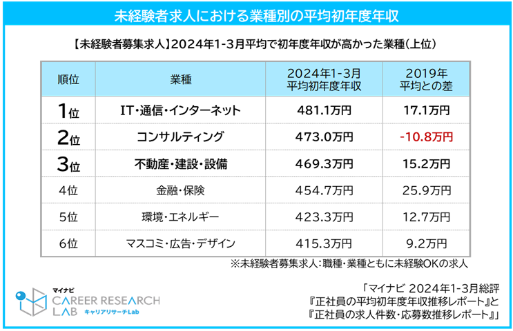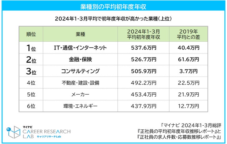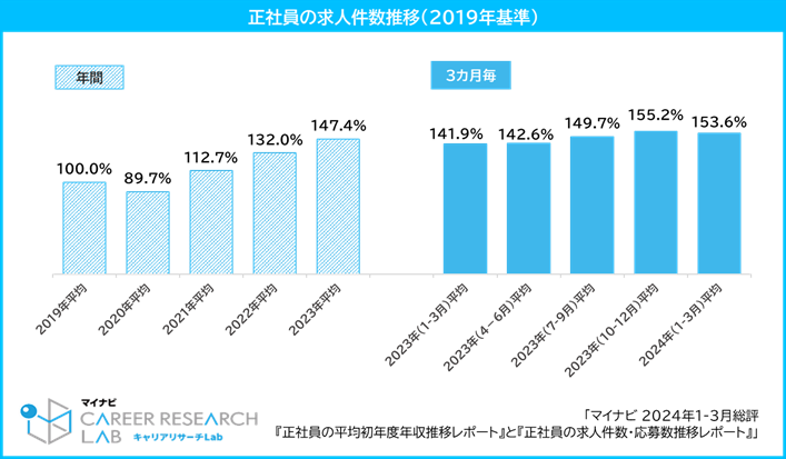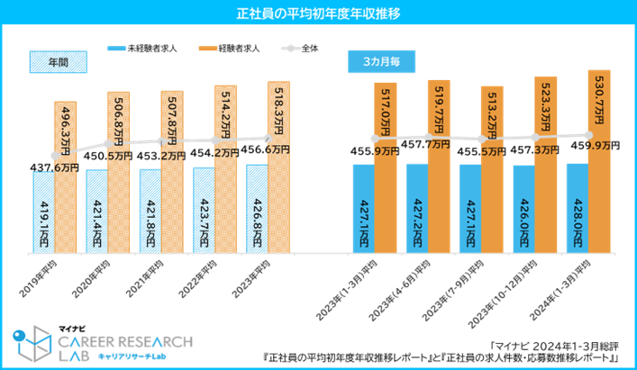 マイナビ転職、「正社員の平均初年度年収」と「正社員求人件数」の2024年1-3月総評を発表