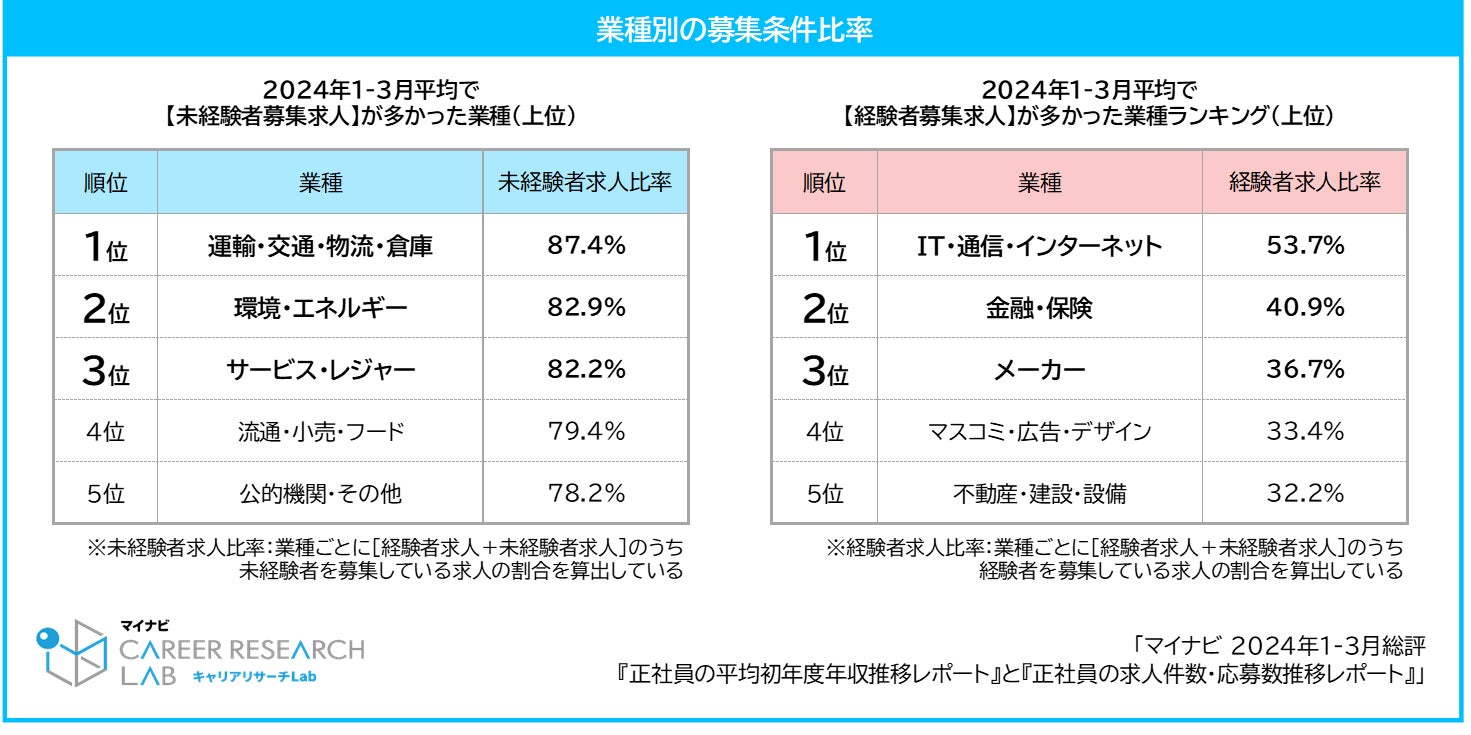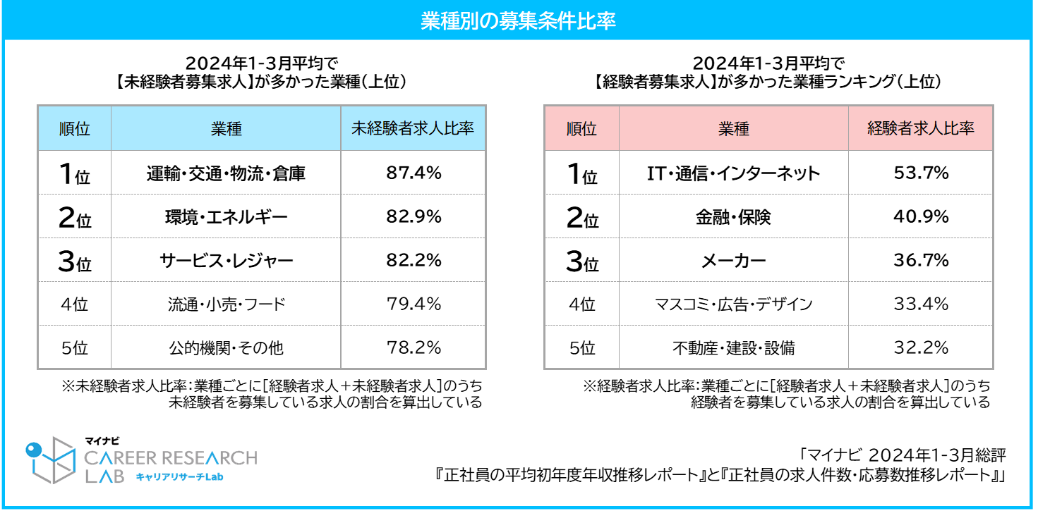 ~2024年1-3月平均 業種別の経験者・未経験者求人比率~