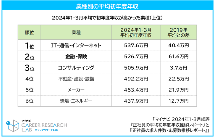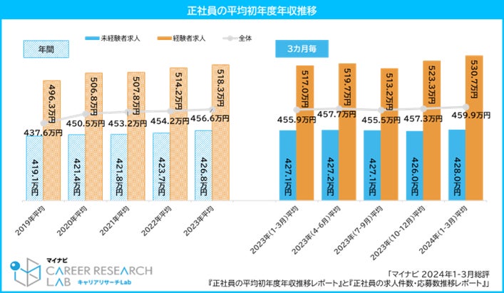 【調査名】「正社員の平均初年度年収」と「正社員求人件数」の2024年1-3月総評
