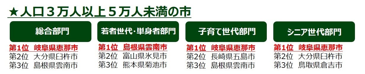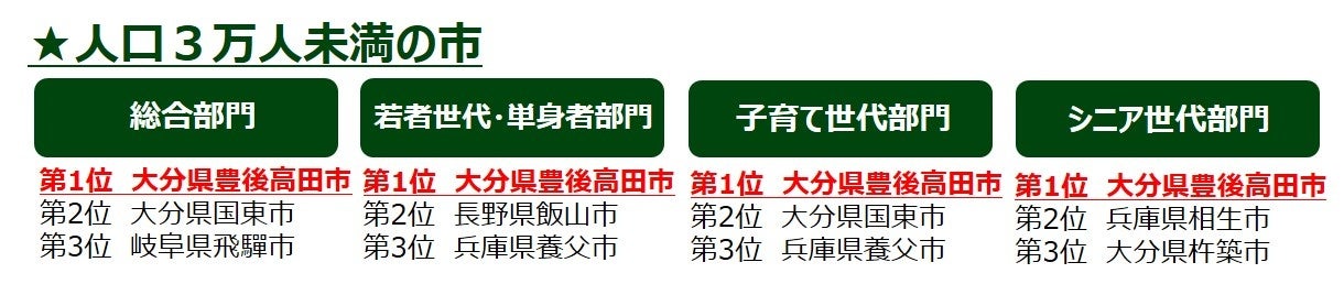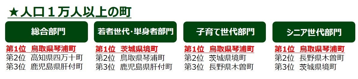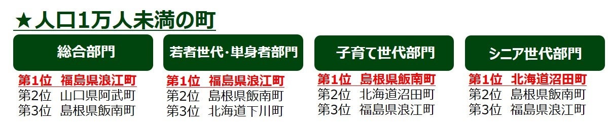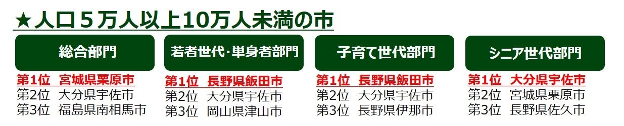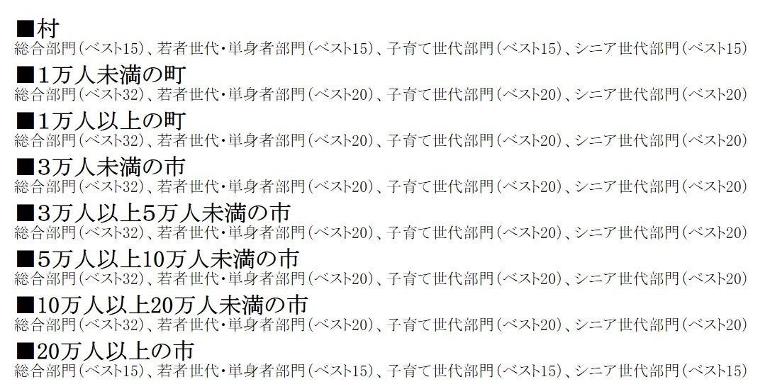 【2024年版 第12回「住みたい田舎ベストランキング」】人口規模別(8グループ)で、世代別ランキングを発表