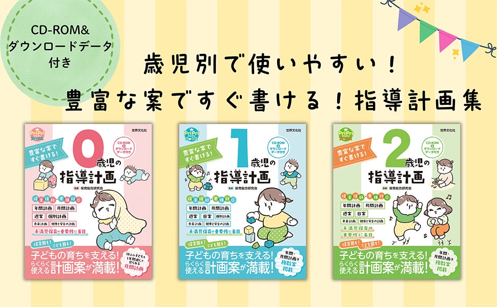 世界文化社は、歳児別の指導計画集『0歳児の指導計画 CD-ROM&ダウンロードデータ付き』『1歳児の指導計画 CD-ROM&ダウンロードデータ付き』『2歳児の指導計画 CD-ROM&ダウンロードデータ付き』を1月30日(木)に同時発売いたしました。