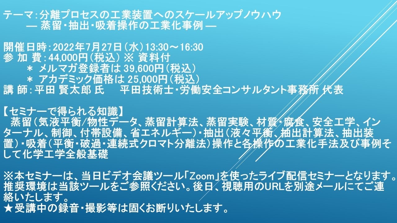 【ライブ配信セミナー】分離プロセスの工業装置へのスケールアップノウハウ 7月27日(水)開催 主催:(株)シーエムシー・リサーチ