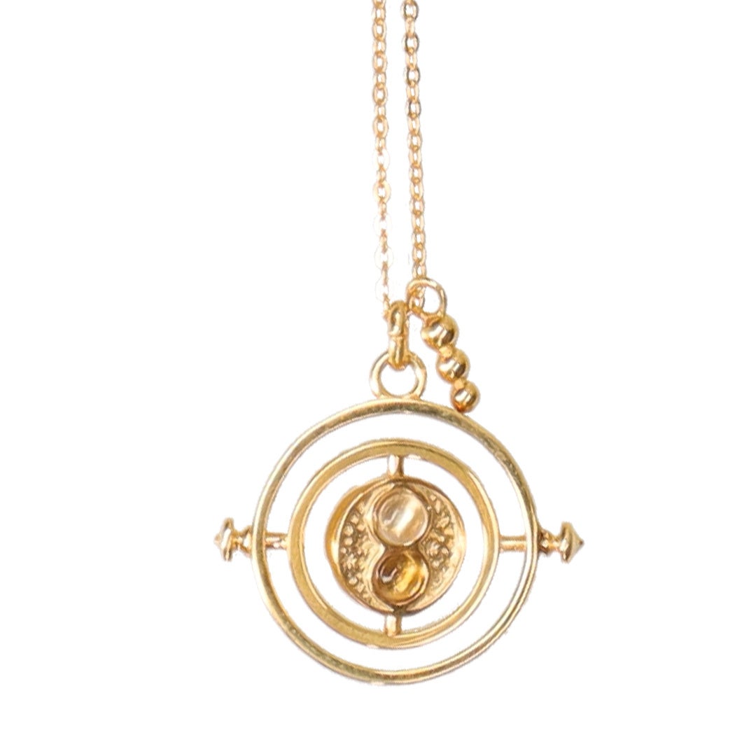 シルバー925の素材を採用し、金メッキ加工を施した高級感のあるタイムターナーのシルバーネックレスです。砂時計部分に水晶とシトリンの天然石を使用し、砂時計が回転する仕様を再現したこだわりのアイテムは、自分へのご褒美はもちろんのこと、贈り物にもおすすめ。