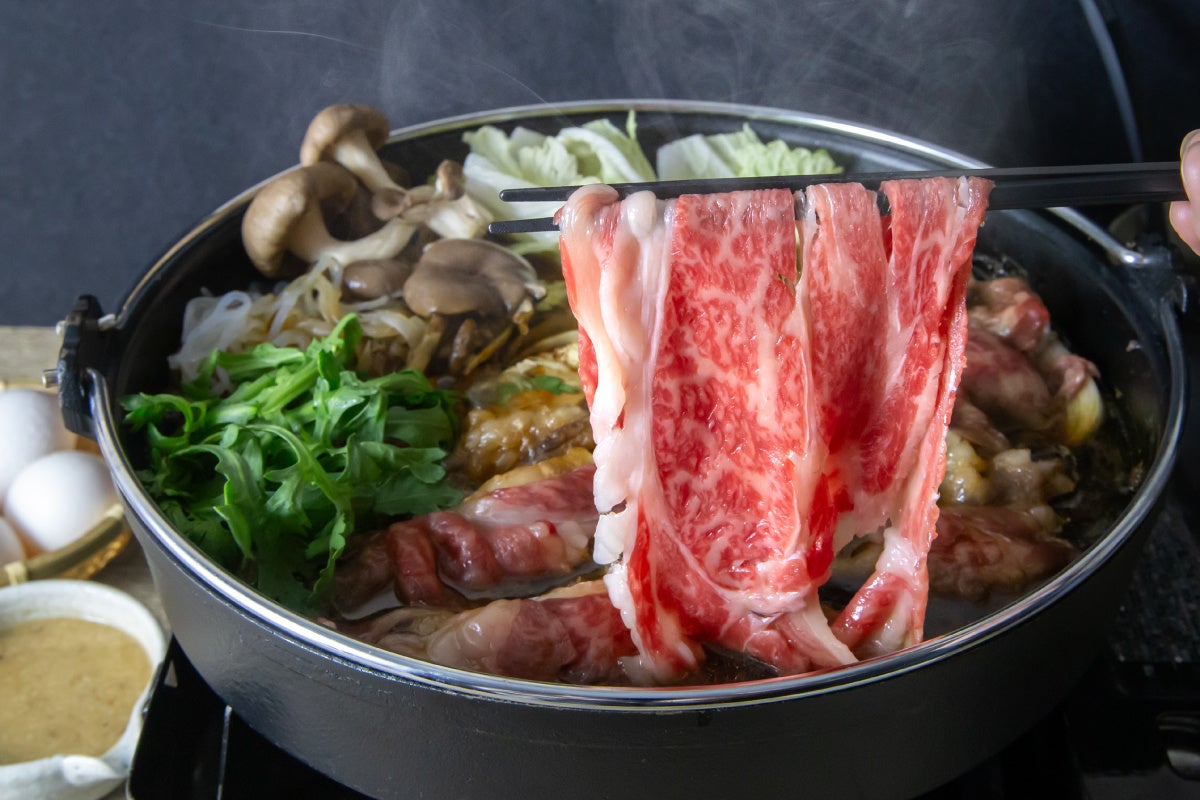 柔らかくてジューシーな神戸牛をそのまま食べるも良し、たっぷりの自然薯とろろにくぐらせて食べるのもオススメです。神戸牛の旨味と自然薯とろろが絶妙な味わいを生み出す特別なすき焼き鍋をどうぞ。