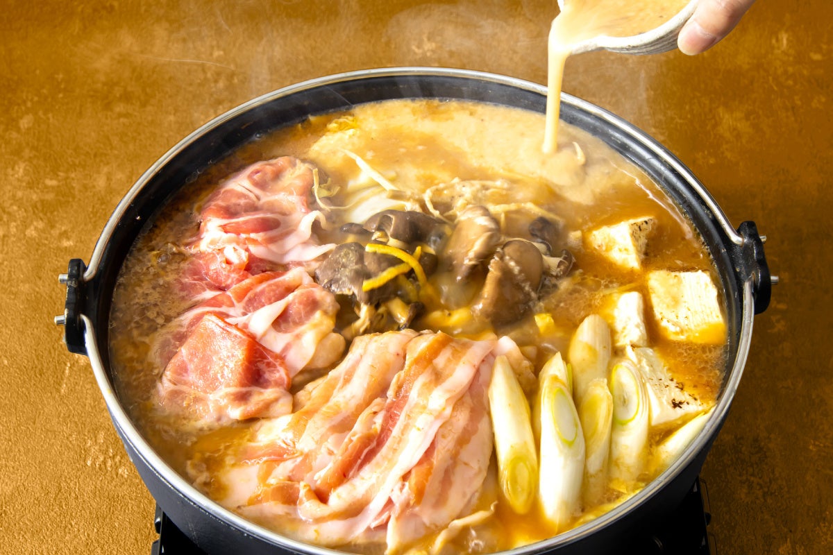 お子様や女性に大人気なまろやかでクリーミーな豆乳スープはほっと温まる一品。スープには隠し味に味噌を使用。味噌とチーズが溶け込んだコク深いスープが具材の旨味を引き立てます。